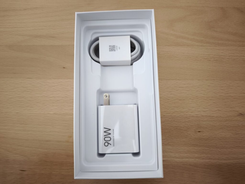 本体の下、下段には、高出力の90W充電器とケーブルが同梱されています。ありがたい。