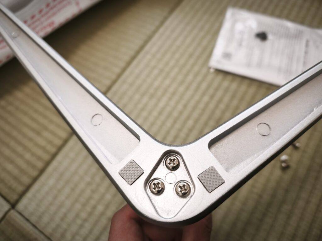 モニター本体とモニタースタンドの取り付けもネジ式なのでプラスドライバーで固定していきます。
