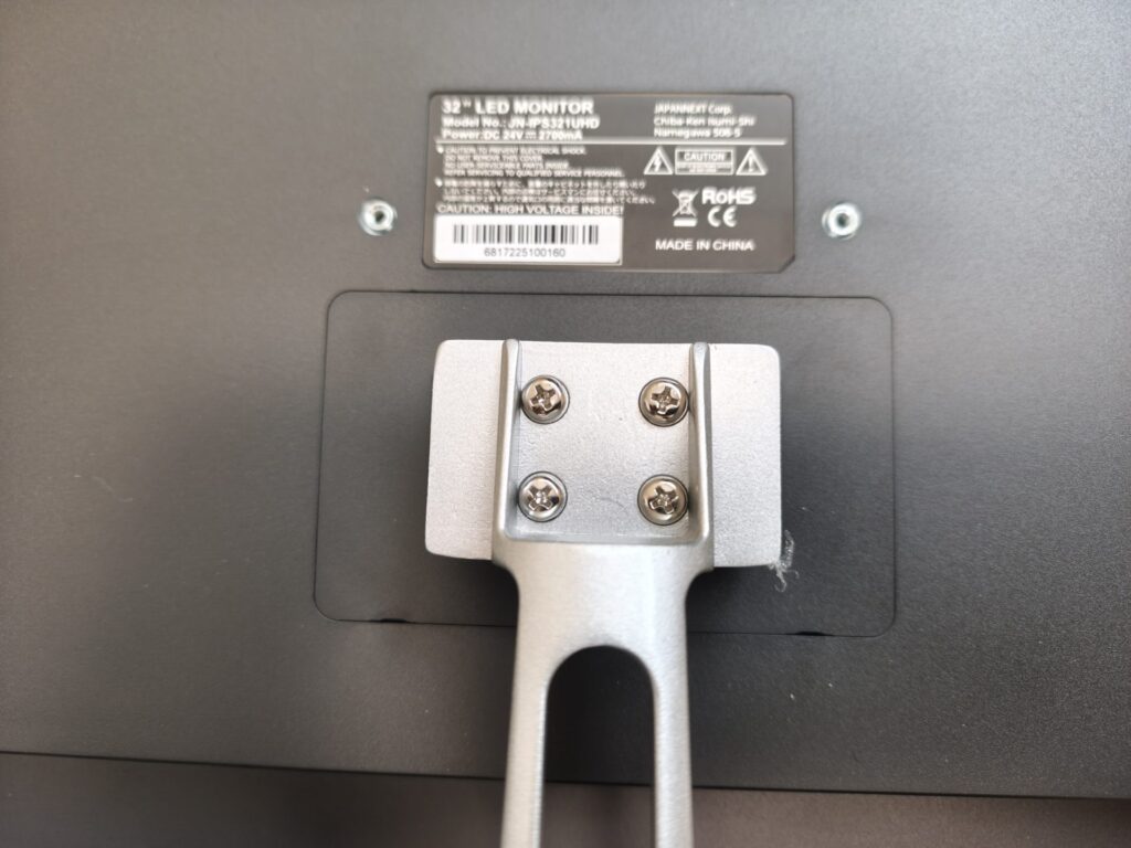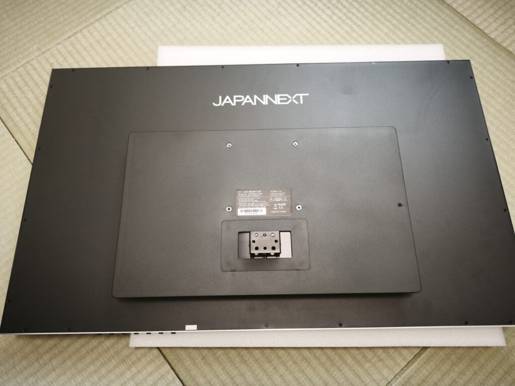 スタンドを取り付けていきます。モニタ本体の背面です。VESAにも対応しているので別売りモニタースタンドにも取り付け可能です。