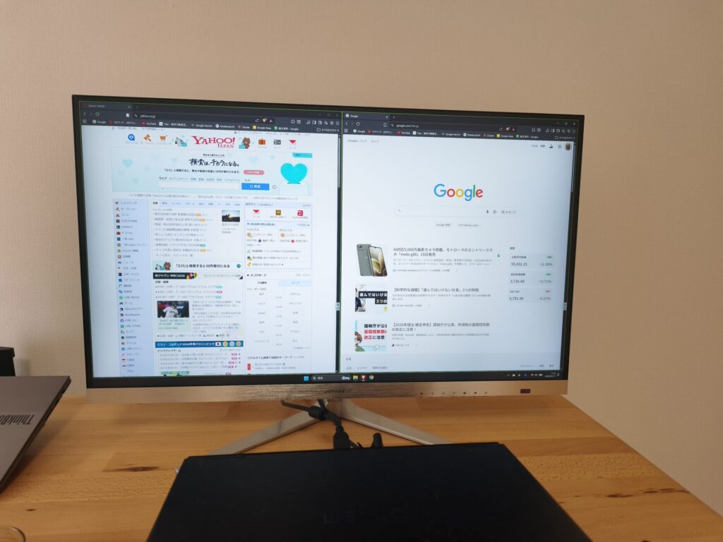 ずっしり重たいですが、安定感はあります。4K高解像度な32インチモニターで作業もしやすいです。