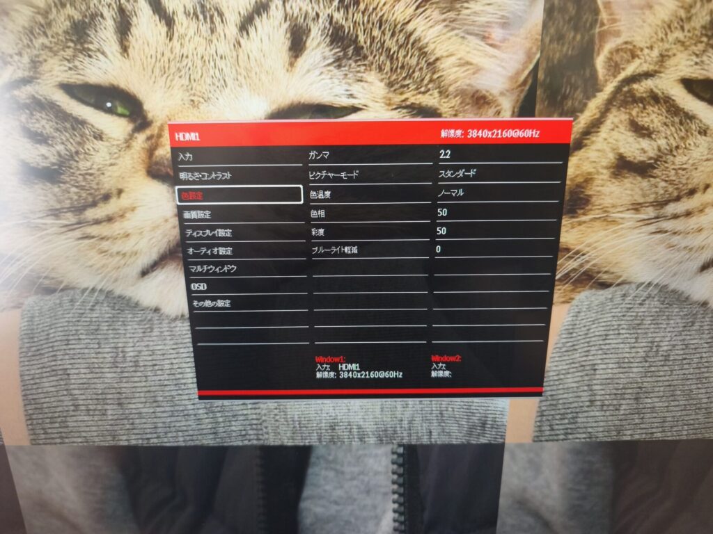 JN-IPS321UHDのメニュー画面