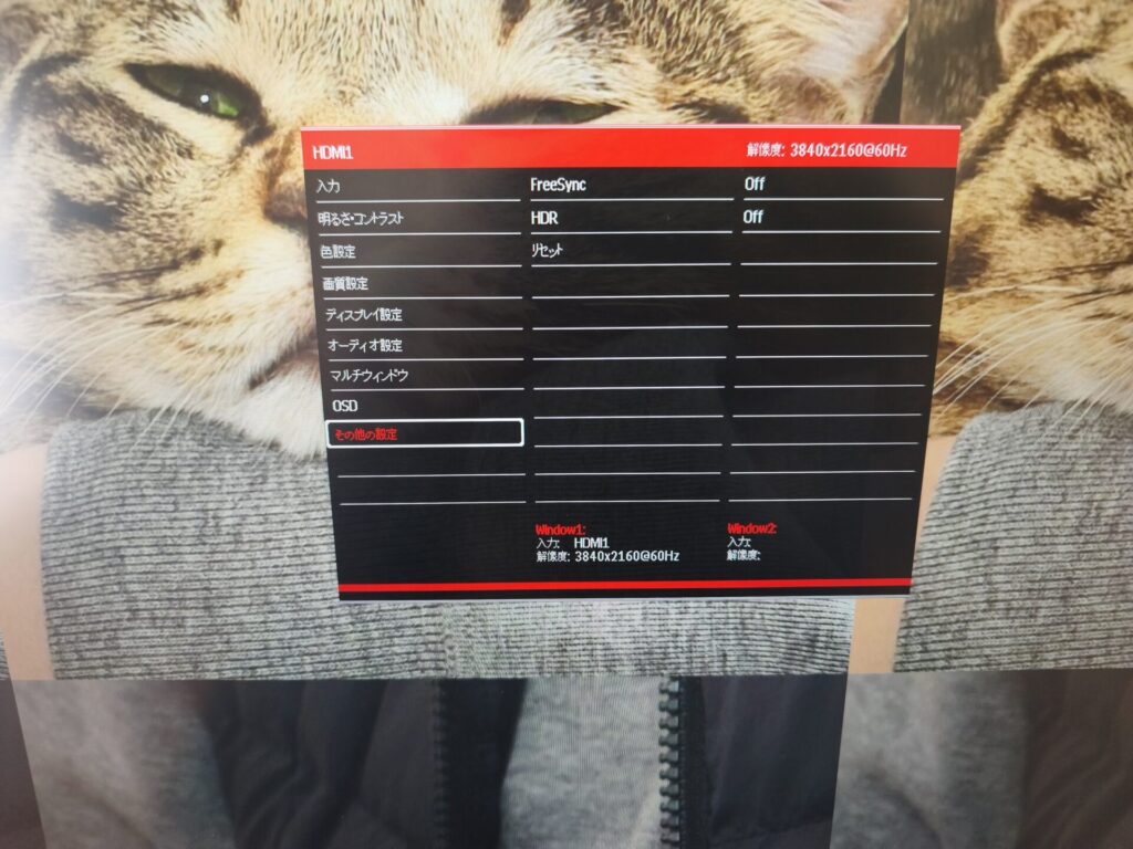 FreeSyncだったりHDRはここでonにできます。